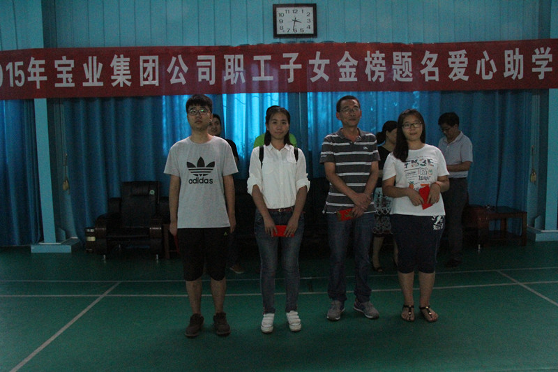 2015年8月27日下午,寶業(yè)(集團)公司組織開展了2015年“愛心助學”活動,集團公司副總經理譚照明先生、代均康先生、財務總監(jiān)黃曉琴女士和房地產總經理汪軍先生出席了本次活動。根據(jù)公司“愛心助學”獎勵制度對15名考入本科院校的職工子女進行了獎勵,并將助學獎金發(fā)到了這15名的職工子女手中。