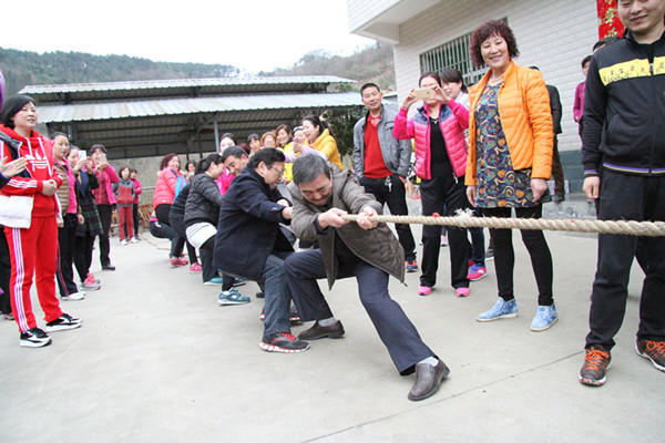 經(jīng)過稍許的休息后,在陳家溝農(nóng)家樂舉行了全體女員工單人跳繩比賽和拔河比賽。跳繩比賽規(guī)定每人用時(shí)一分鐘,在規(guī)定時(shí)間內(nèi)完成數(shù)量多者為勝。經(jīng)過近一個(gè)小時(shí)的激烈的角逐,田曉華、王紅、黃燕和單薇四人在幾十名女職工中脫穎而出,分別取得了第一、第二、第三的好成績。接著,在大家的熱烈掌聲中又開始了拔河比賽,比賽一共分為八組,各小組都顯示出勇奪第一的比賽氣勢。當(dāng)裁判的哨聲一響起,隊(duì)員們雙手緊握長繩,憋足了勁拼命往后拉,啦啦隊(duì)也在旁邊給隊(duì)員們加油鼓氣,恨不得抓起繩子跟隊(duì)員一起努力!加油聲、吶喊聲此起彼伏,一陣蓋過一陣。經(jīng)過激烈的耐力、體力較量,最終角逐了第一、二、三名,并為他們頒發(fā)了獎(jiǎng)品。