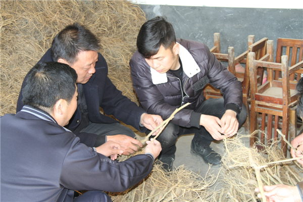 14. 2018年11月26日(周一),陳正余、譚照明、代均康、蘇鳳剛、馬釗、彭福等,到麻廟村進(jìn)行新栽桑樹樹型養(yǎng)成和冬季桑園管理技術(shù)培訓(xùn),麻廟村“兩委”班子成員、合作社養(yǎng)蠶大戶共23人參加了培訓(xùn)。陳正余現(xiàn)場手把手的給大家示范講解,使參培人員基本掌握了相關(guān)的技術(shù)要求。同時(shí),公司給村上送去了價(jià)值5200余元的2000kg生石灰、100kg鹽、50把桑剪。